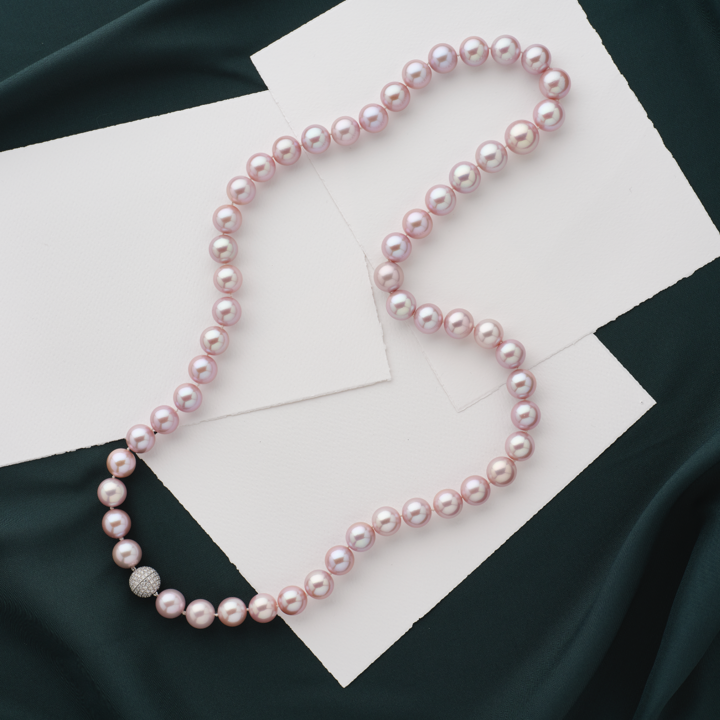 La Contessina represents the pinnacle of pearl craftsmanship—a distinguished strand of natural pink Kasumiga pearls curated for the Legacy collection. This rare acquisition transcends fleeting trends, offering the wearer an heirloom of profound elegance. With its soft, blushed luminescence and regal character, it stands as a testament to timeless sophistication and enduring beauty.