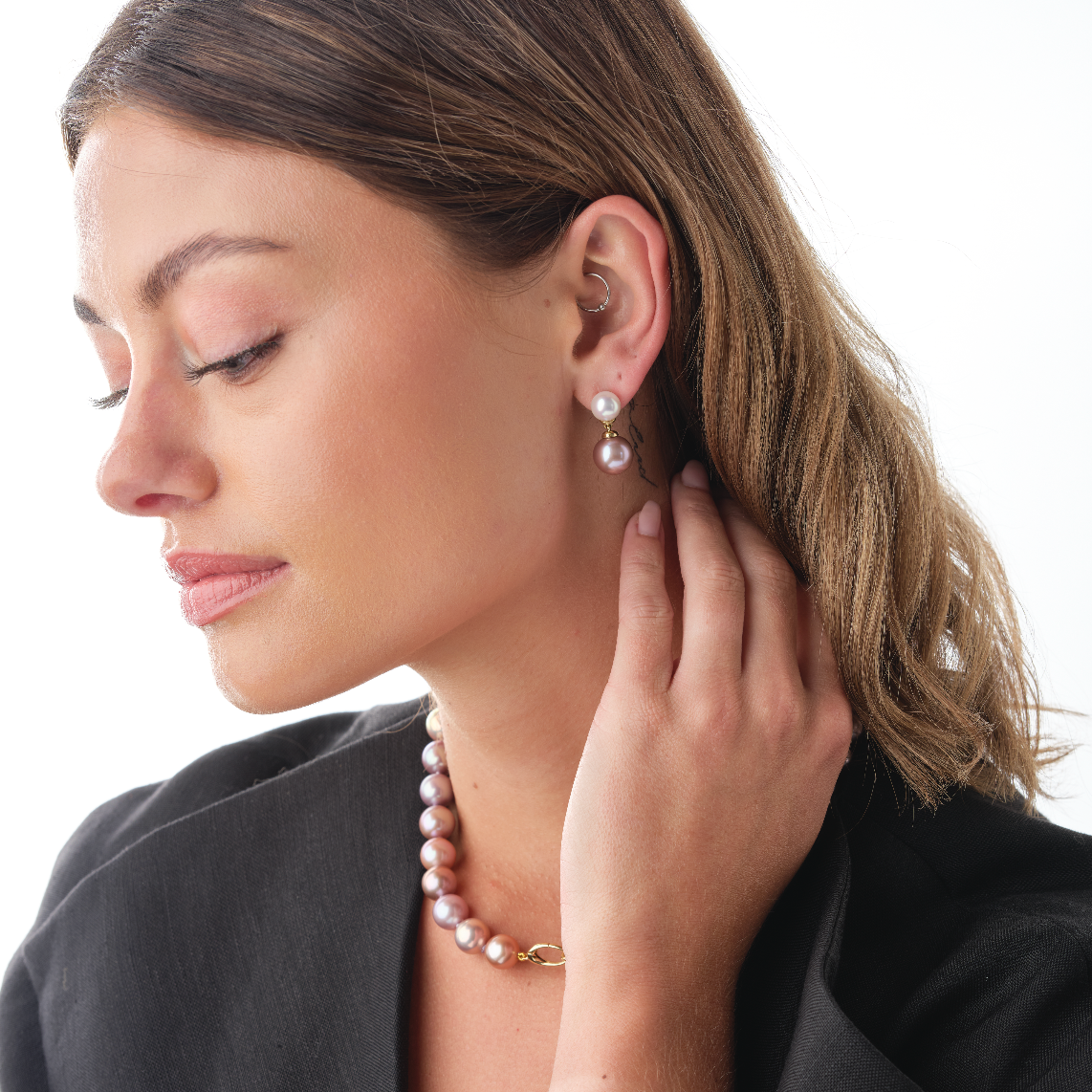 Elevate your elegance with the Duality Pearl Earrings, featuring two pearls of your choice—either luxurious golden South Sea pearls or a refined Akoya and Kasumiga combination. This sophisticated design balances timeless grace with playful charm, making these earrings a versatile accessory for any occasion.