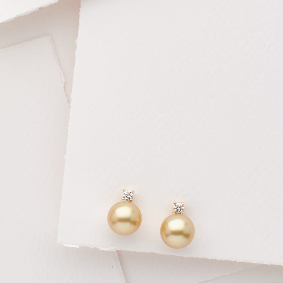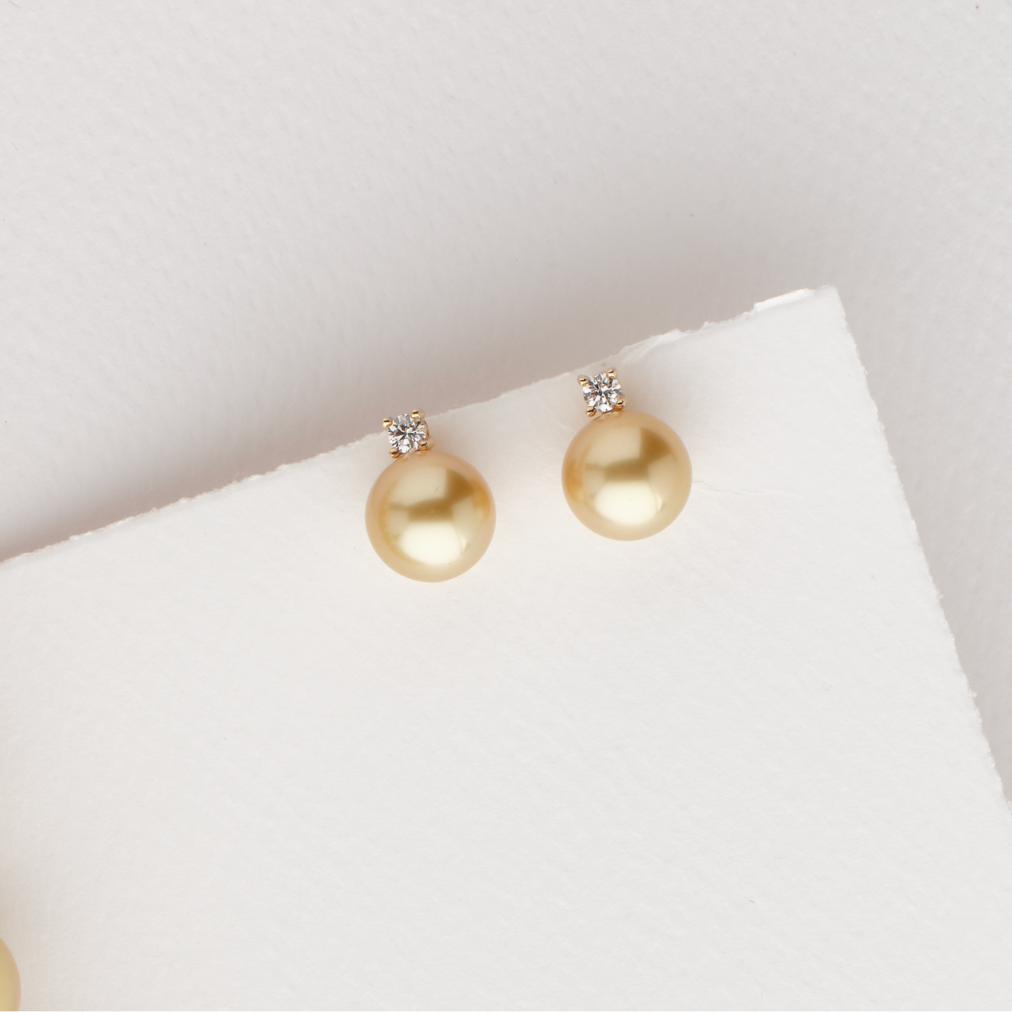 Elevate your everyday elegance with these refined stud earrings, where lustrous golden South Sea pearls meet the timeless sparkle of petite diamonds, all set in warm yellow gold. A sophisticated pairing of organic beauty and brilliant light, these studs offer understated luxury that transitions seamlessly from day to evening wear.