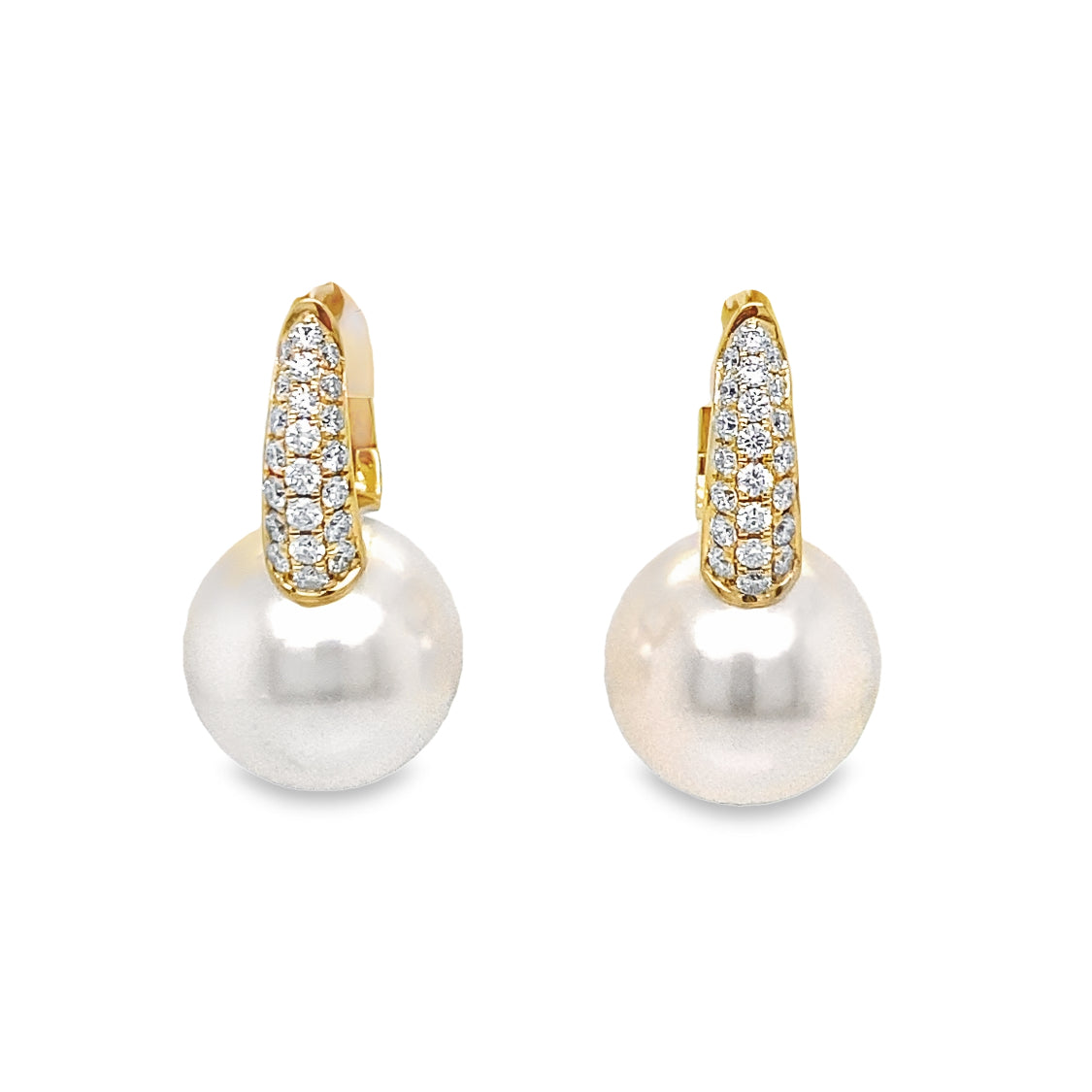 Elevate your look with these sophisticated cuff earrings, where lustrous white South Sea pearls meet sparkling diamonds in an elegant design. The diamond and pearl accents at the base create a refined finish that transitions seamlessly from day to evening wear. A timeless piece that adds understated luxury to any jewelry collection.