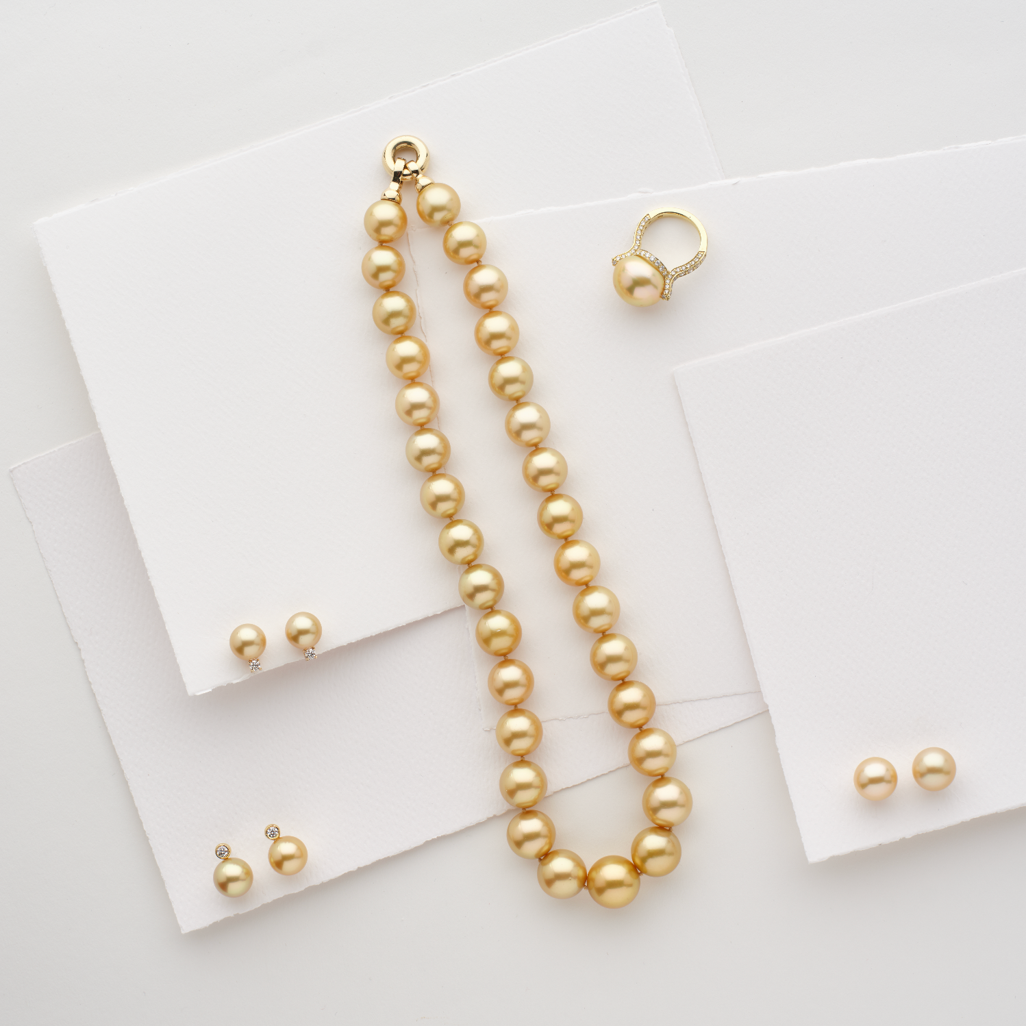 Elevate your elegance with this exquisite ring, showcasing a large golden South Sea pearl set on a diamond-studded shank. The luminous pearl's natural glow is beautifully complemented by the sparkling diamonds, creating a timeless piece that shines with refined sophistication. Perfect for special occasions or adding a touch of luxury to everyday wear.