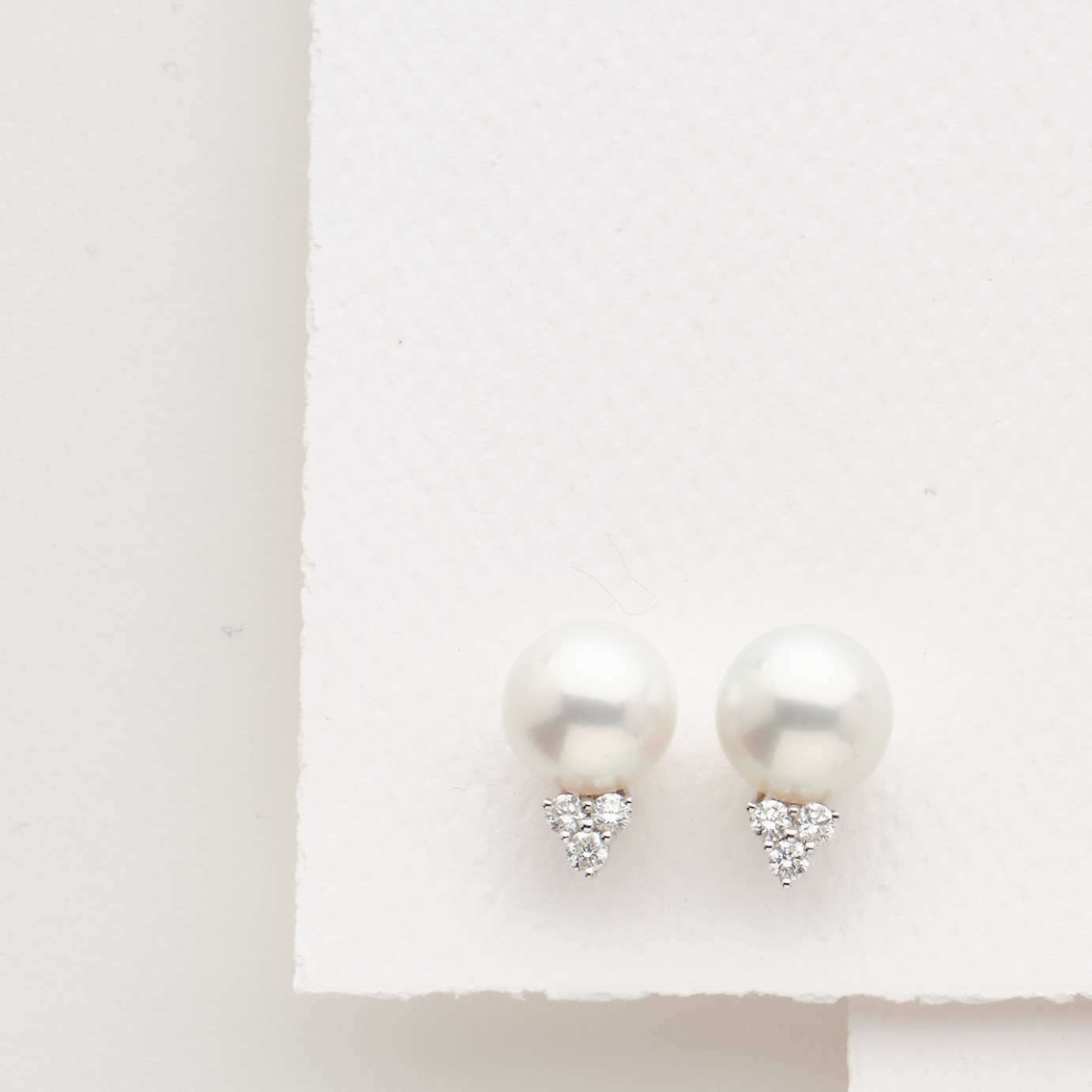 Discover timeless sophistication with The Trinity Diamond South Sea Studs. Each pair showcases three brilliant diamonds complemented by lustrous White South Sea pearls, measuring 11.5-12mm for an understated yet commanding presence. The harmonious blend of precious gemstones creates an heirloom-worthy piece that transitions effortlessly from daytime to evening occasions, offering refined elegance that speaks to discerning taste.