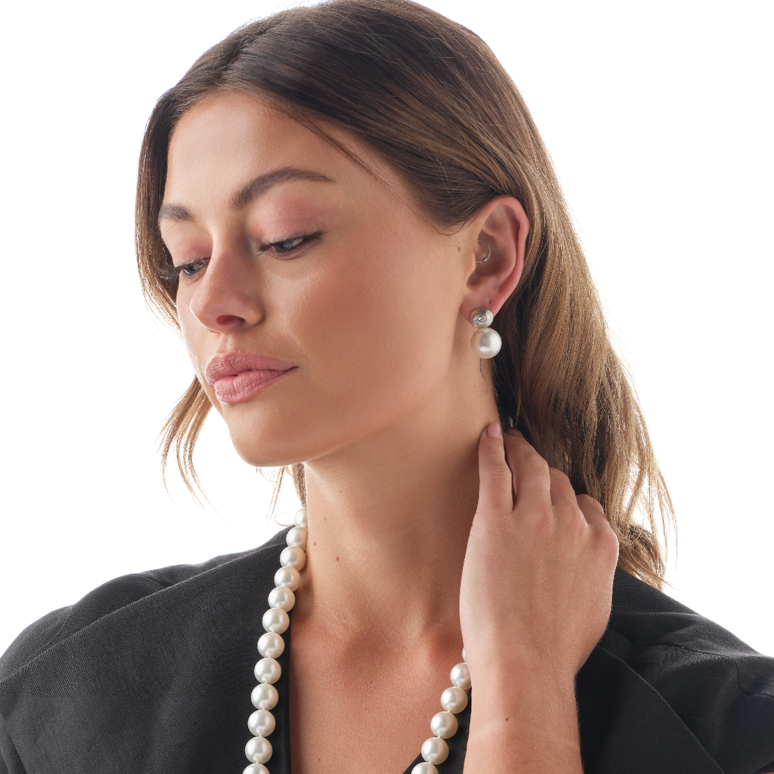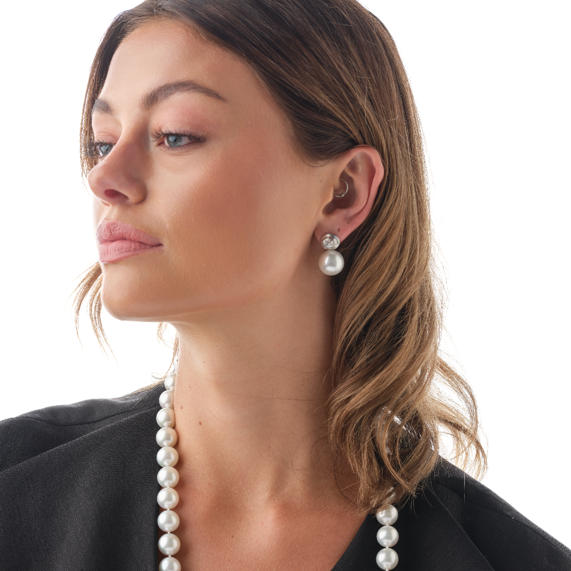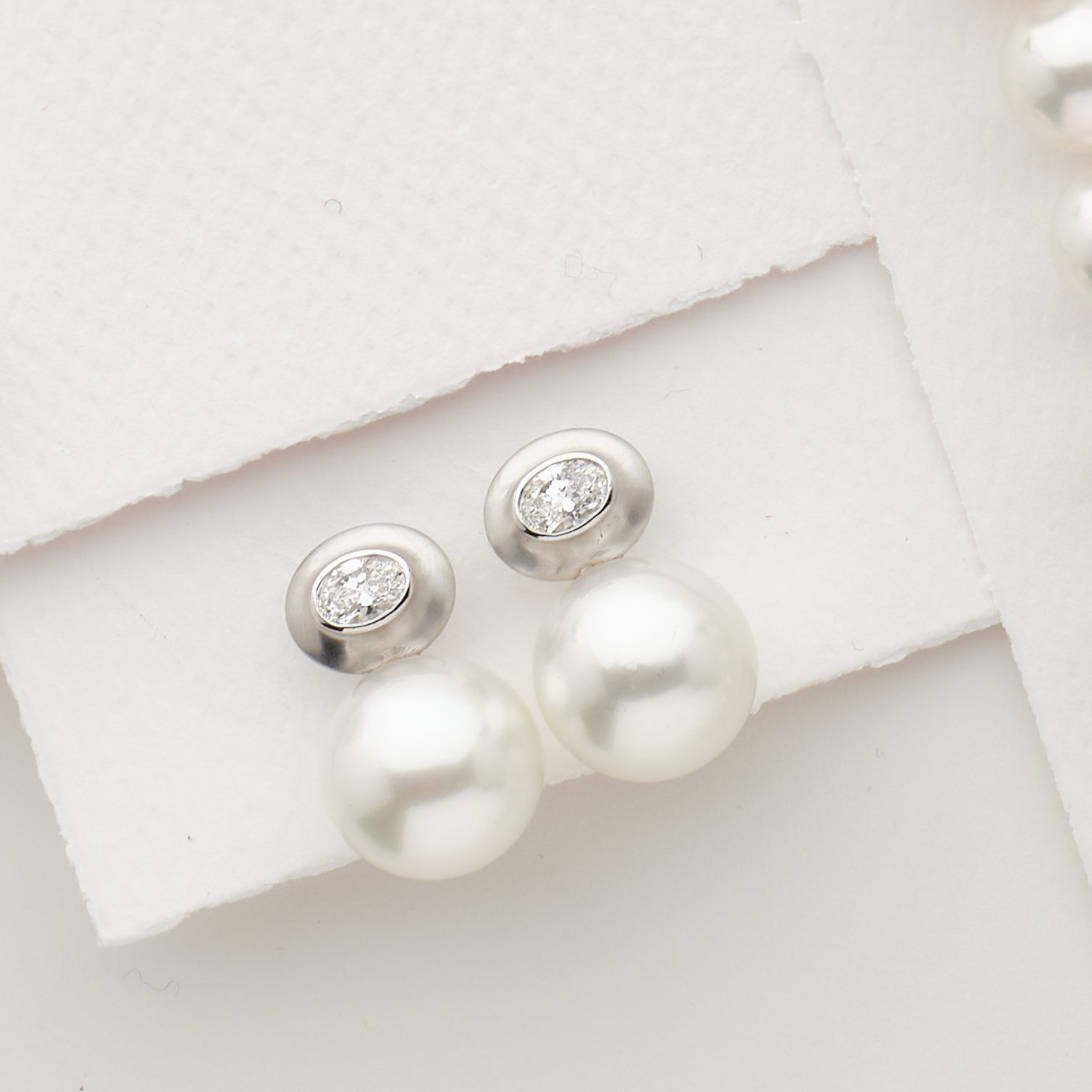 Elevate your jewelry collection with these exquisite South Sea pearl earrings. Each piece showcases a lustrous 15mm white South Sea pearl, complemented by 1.12 carats of precisely bezel-set diamonds. Crafted in brushed platinum, these earrings deliver timeless sophistication with a contemporary finish. Perfect for special occasions or refined everyday elegance.