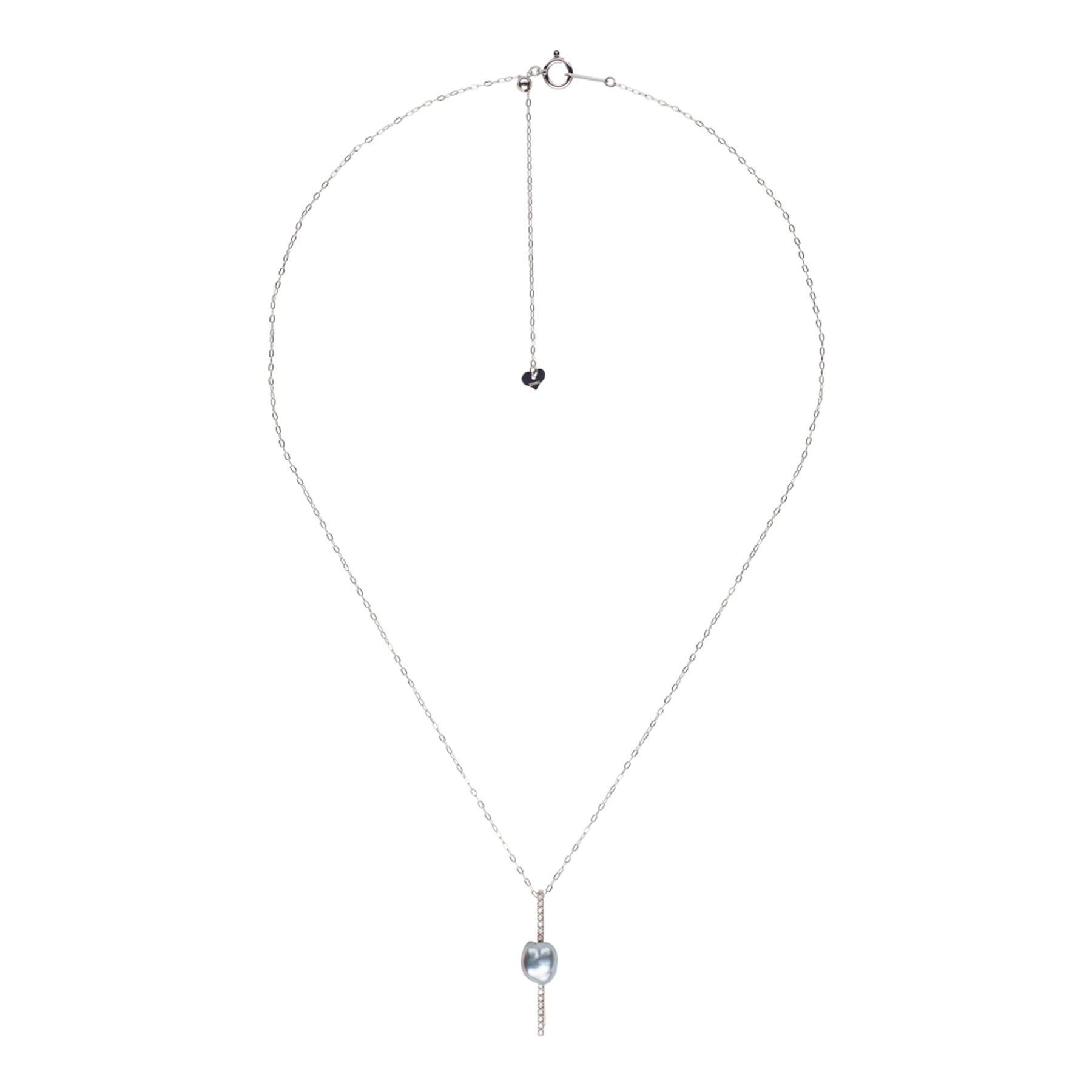 A dazzling, delicate diamond bar showcases a uniquely-shaped rare Tahitian keshi Pearl. Featuring an adjustable sliding chain, adjust to your preferred length for different necklines and style a pendant as unique and unforgettable as you.