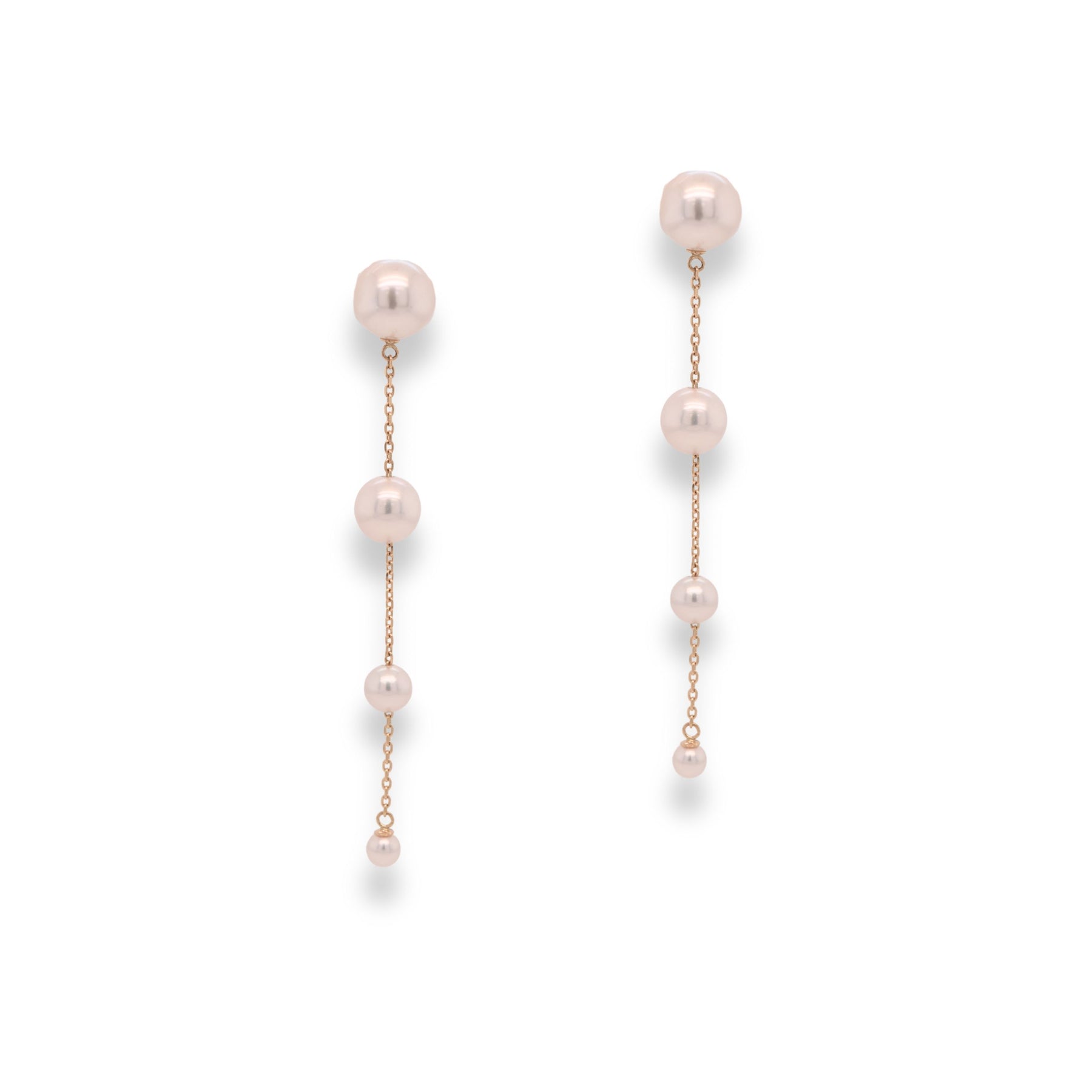 Petite Pearl Fountain Earrings showcase graduating Akoya pearls in an elegant drop design that creates the illusion of floating gems. The refined silhouette catches light beautifully, making these versatile earrings perfect for both everyday wear and special occasions. A timeless piece that adds understated sophistication to any look.