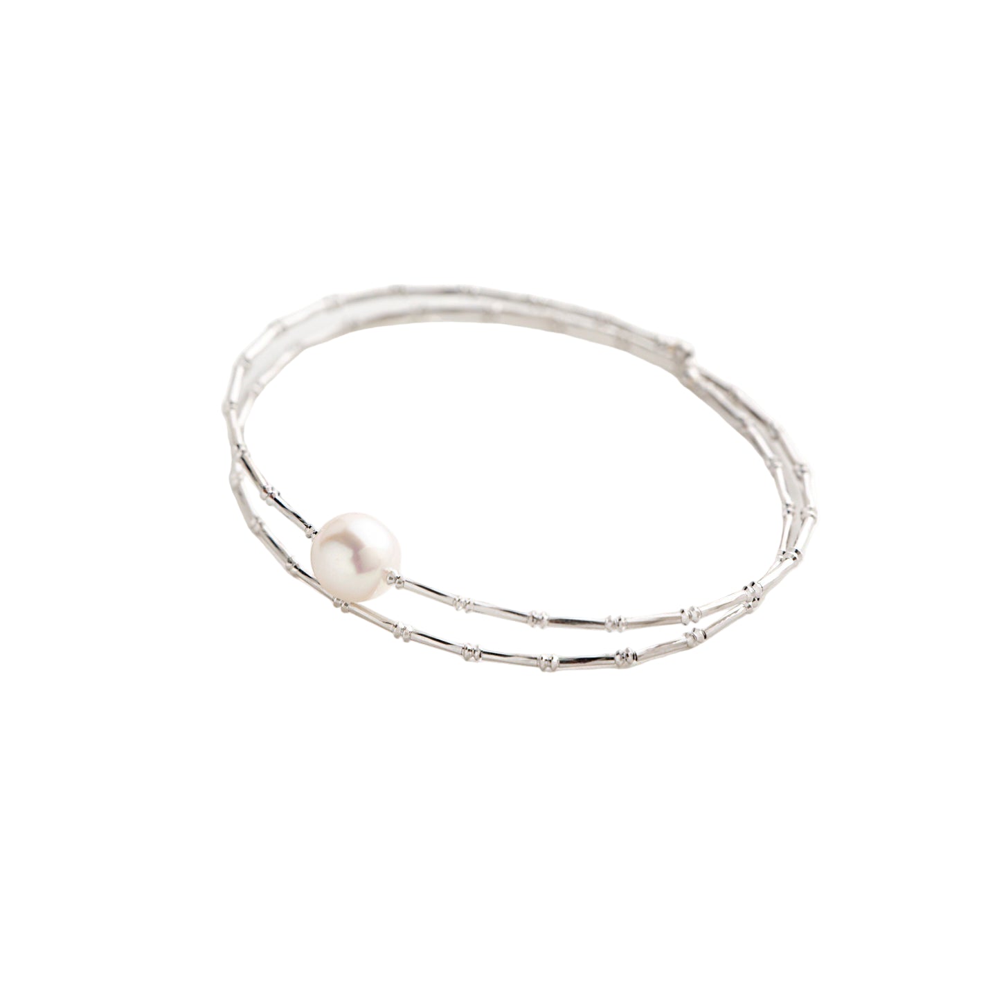 Discover the fun and trendy allure of our Double Sparkle Bangle Bracelet! Featuring a radiant 8-8.5mm Akoya Pearl, this piece combines elegance with a touch of sparkle.