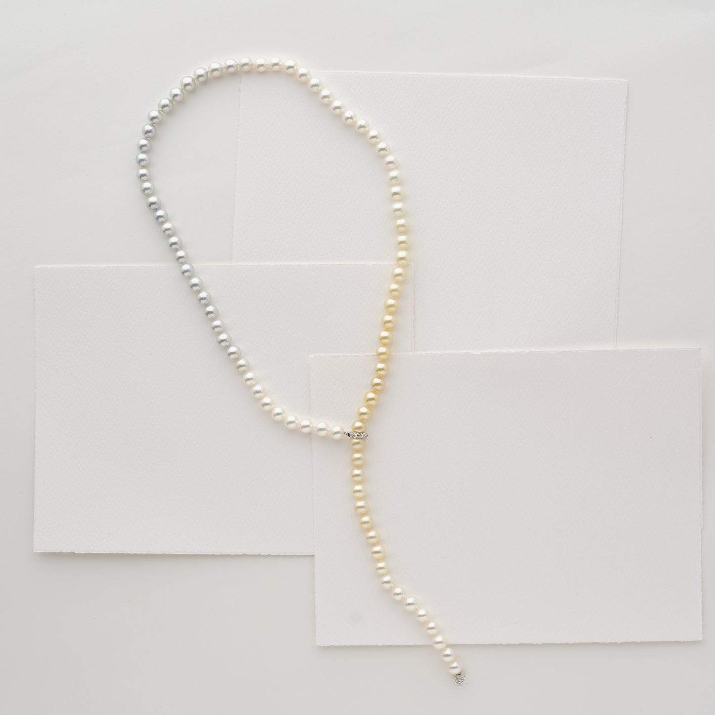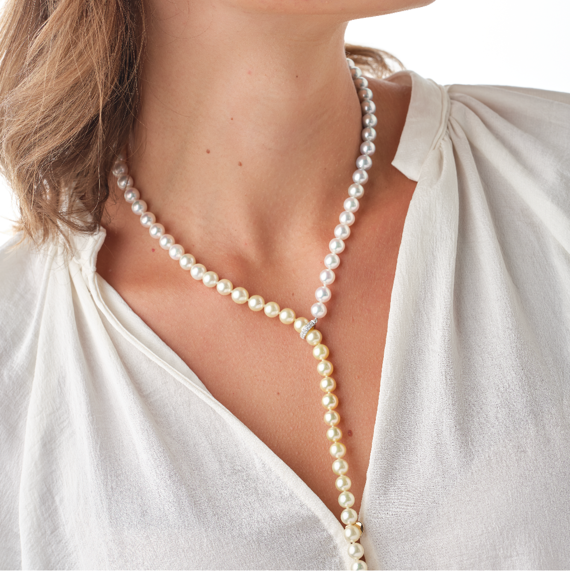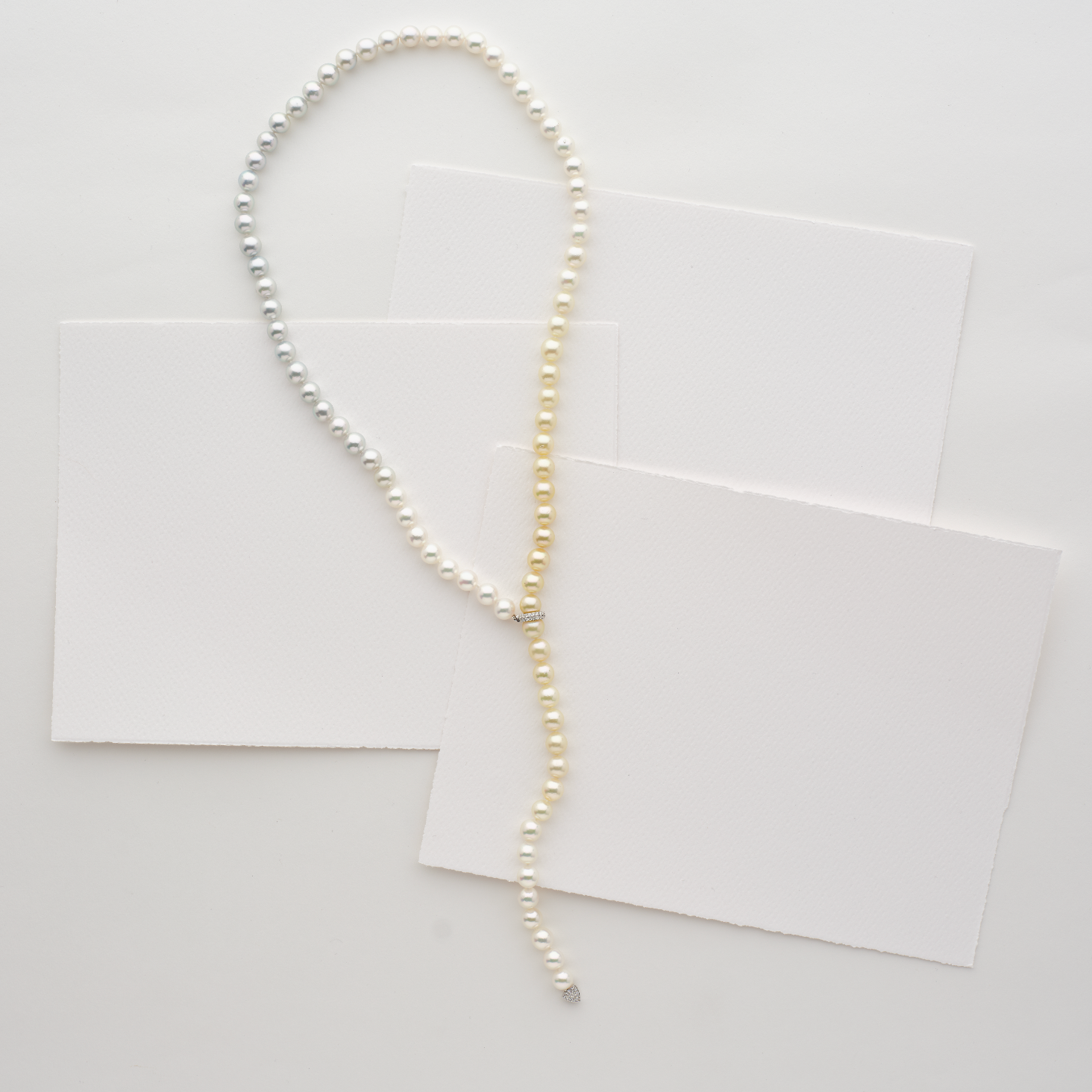 Multi-Color South Sea and Akoya Pearl Ombré Strand Lariat Necklace with Diamond Accents