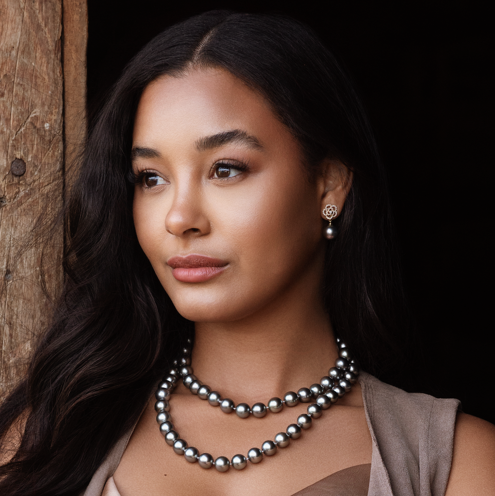 Twisted Flower Pearl Earrings showcase an elegant design pairing sparkling diamonds with lustrous Tahitian Pearl drops. The intricate twisted flower motif creates a timeless piece perfect for both special occasions and everyday sophistication. A refined addition to any jewelry collection.