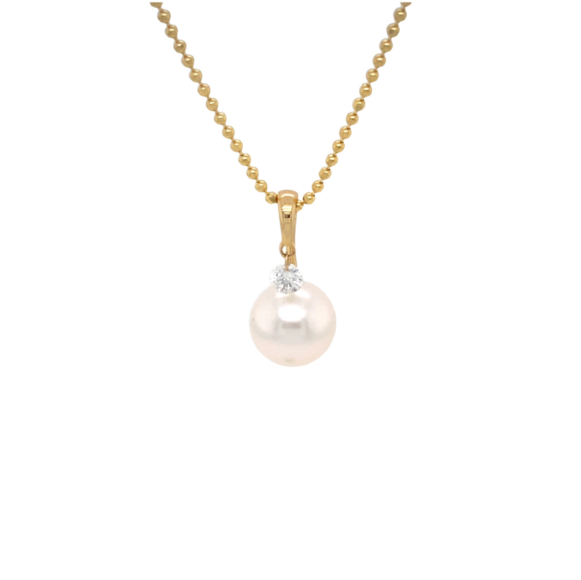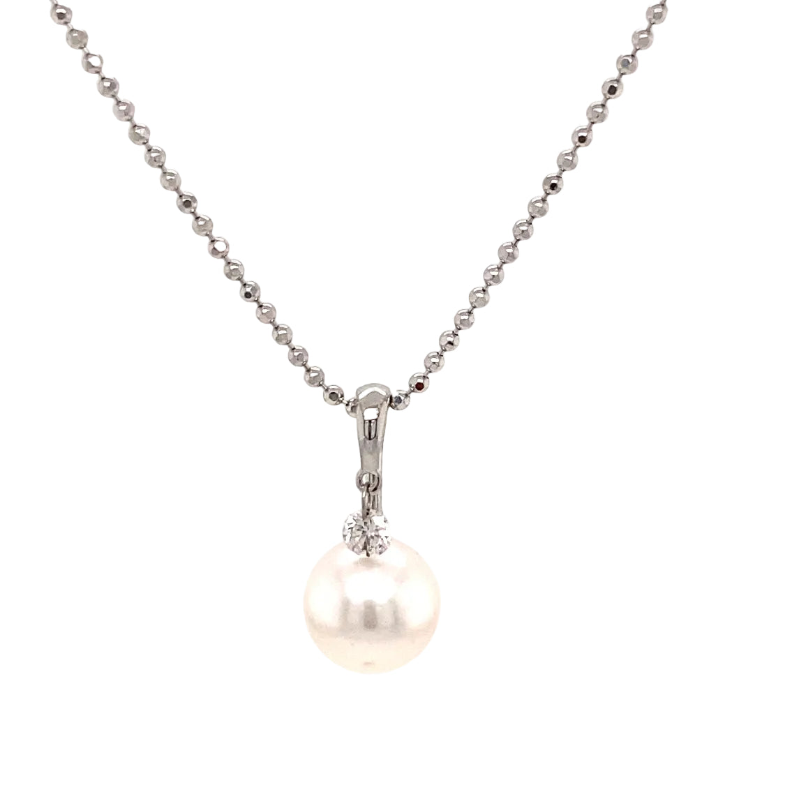 8-8.5mm Akoya & Pearl Pendant in 18K White or Yellow Gold with .10CTTW Twinkling Diamond. Adjustable Chain 15”-18”.