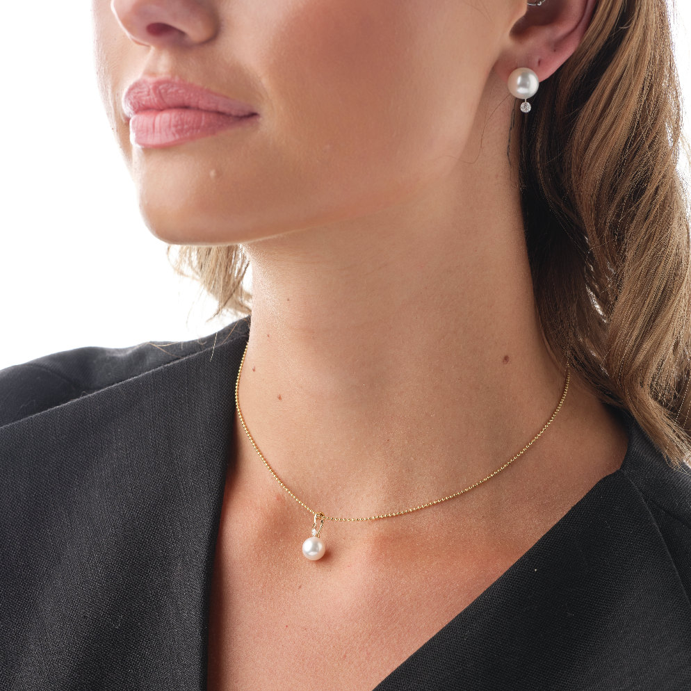Discover timeless elegance with our Akoya Twinkling Diamond Pendant. This sophisticated piece showcases our signature design—a radiant diamond perched gracefully atop a lustrous pearl, creating a captivating interplay of light and shimmer. Suspended on a delicate ball chain, this pendant combines classic pearl beauty with modern sparkle, making it an ideal choice for those who appreciate refined jewelry that transitions effortlessly from day to evening wear.